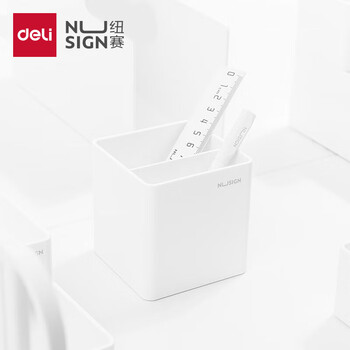 得力(deli)【热门商品】方格笔筒 德国创意设计 简约ins办公室桌面收纳防滑底 象牙白NS011