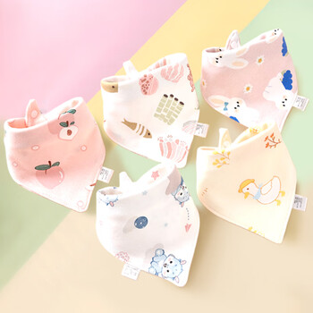 9i9宝宝口水巾纯棉防水围嘴婴儿三角巾按扣可调节加大升级5条A60粉
