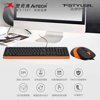 双飞燕(A4TECH)F1010 104键 有线键鼠套装 有线键盘鼠标套装电脑键盘办公键盘薄膜键盘 飞时代 象牙白 有线