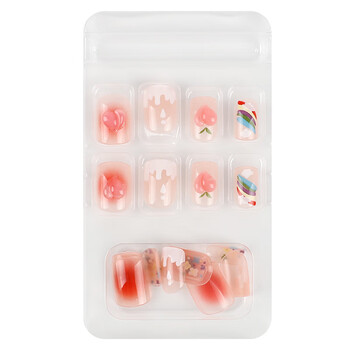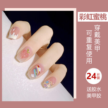 美肤语美甲贴片穿戴甲(冰透彩虹蜜桃)短款假指甲果冻胶可拆带工具MF8606