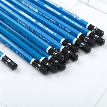 施德楼(STAEDTLER)8H素描铅笔 100经典蓝杆专业美术手绘速写专用初学者考试画画工具12支/盒