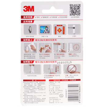 3M 双面胶 高曼双面无痕胶条替换装 粘贴牢固取下无痕 4片大号胶条(大号)