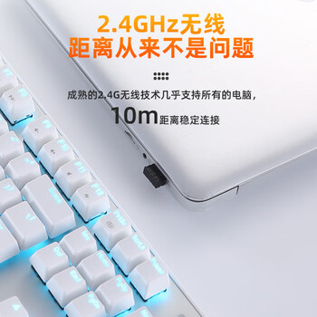 达尔优(dareu)EK810三模无线键盘 机械键盘 办公键盘蓝牙2.4 游戏键盘 可充电2000AH长续航 白色茶轴