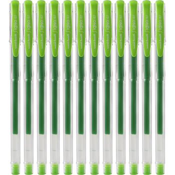 uni三菱UM-100彩色中性笔签字笔 0.7mm学生办公防漏墨啫喱笔考试笔 浅绿色 12支/盒