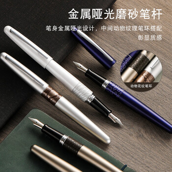 百乐(PILOT)88G钢笔商务签字笔金属笔杆办公实用学生练字专用成人书法礼物 FP-MR2 白色虎纹F尖