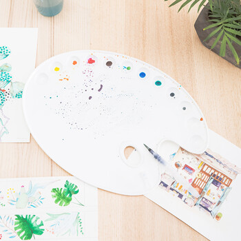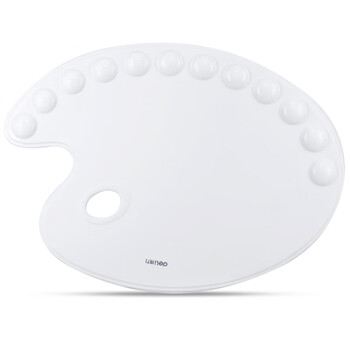 得力(deli)基础款美术绘画12孔大号调色盒 椭圆调色板 防漏水彩水粉丙烯颜料盒 调色盘 白色68300 规格:12孔
