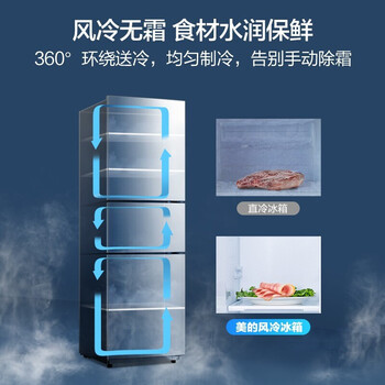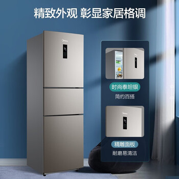 美的(Midea)247升三门家用冰箱风冷无霜小冰箱BCD-247WTM(E)全温区变温智能家电节能