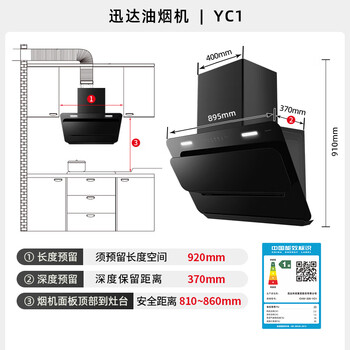 迅达(XUNDA)抽排吸油烟机家用侧吸式 20立方爆炒吸力 一级能效自清洁挥手感应 YC1