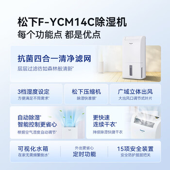 松下(Panasonic)除湿机/抽湿机 除湿量14升/天 40㎡家用卧室地下室轻音干衣净化回南天吸湿器F-YCM14C