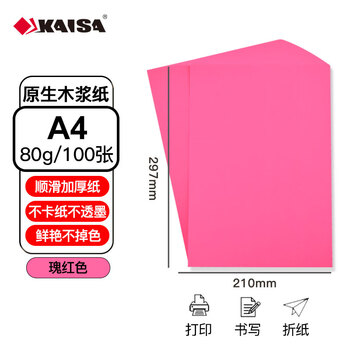 凯萨(KAISA)A4/100张玫红色打印纸80g彩色a4复印纸 DIY手工折纸剪纸办公彩纸