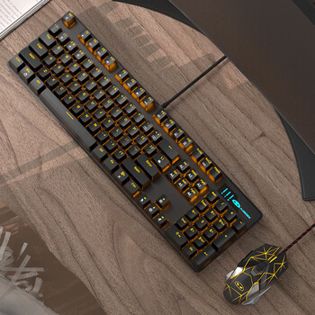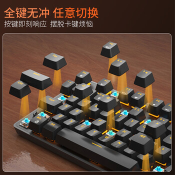 MageGee 机械风暴 真机械键盘鼠标套装 背光游戏台式电脑笔记本键鼠套装 电竞机械键鼠套 黑色橙光 青轴