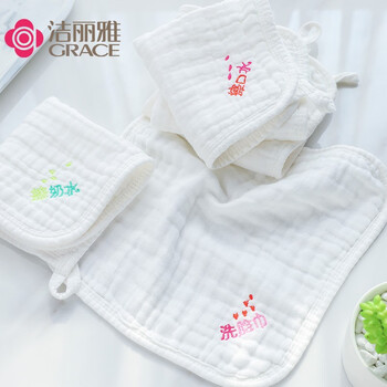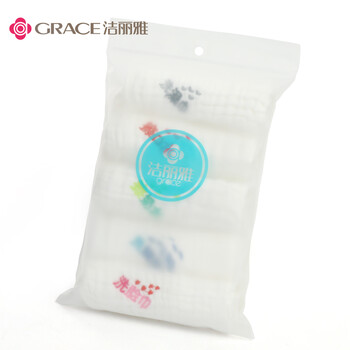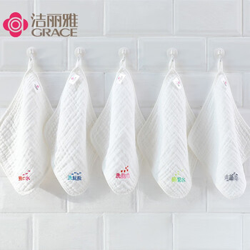 洁丽雅(Grace)A类纯棉6层纱布口水巾5条装婴儿小毛巾方巾宝宝精梳棉手绢手帕