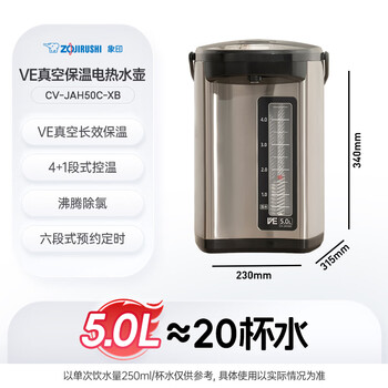 象印(ZO JIRUSHI)电水壶 VE真空保温 家用办公5L容量 CV-JAH50C-XB 不锈钢色