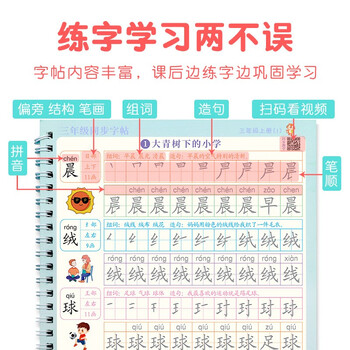绍泽文化 小学语文同步凹槽练字帖 儿童笔顺控笔练字本 三年级上册3本装
