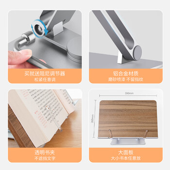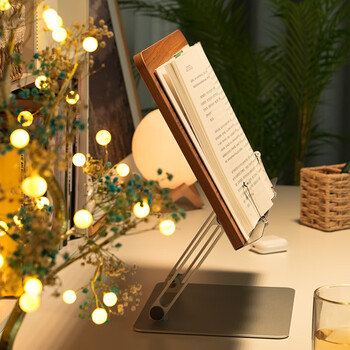 埃普(UP)阅读支架儿童多功能看书架学生桌面书立书靠木质铝合金 成人ipad平板电子阅读架子 AP-2DW深木色