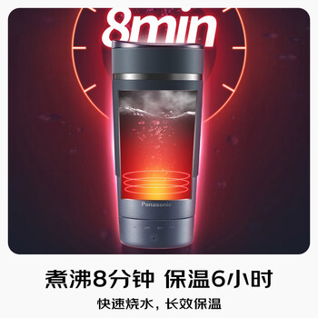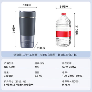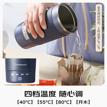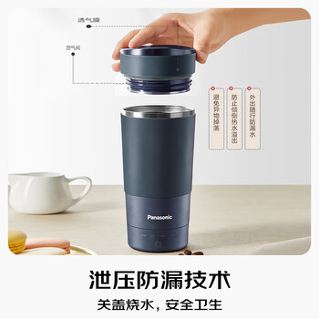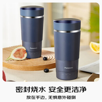 松下(Panasonic)电热水杯 便携式家用旅行烧水杯 蓝色 双层不锈钢 随行冲奶泡茶保温杯NC-K501ASQ
