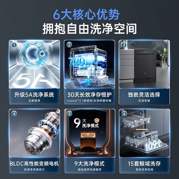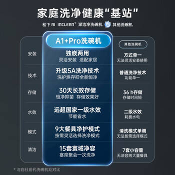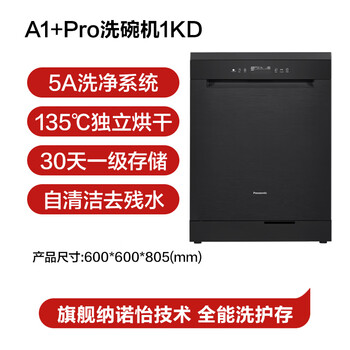松下(Panasonic)独嵌两用洗碗机 150L+大容量 升级5A洗净系统 纳诺怡30天1级储存 135℃烘干除菌 嵌入式独立式1KD