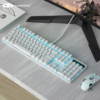 MageGee 机械风暴套装 真机械键盘鼠标套装 机械键鼠套装 背光游戏台式电脑笔记本键鼠套装 白色蓝光 青轴