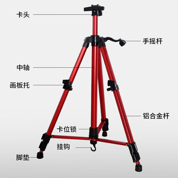 中盛画材玫红铝合金画架画板套装折叠多功能落地画架子支架式便携手摇画架素描套装成人学生画架美术写生