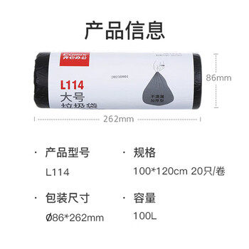 齐心(COMIX)20只物业垃圾袋平口50只黑色100*120cm特大号增厚环卫餐饮物业袋办公用品 黑L114