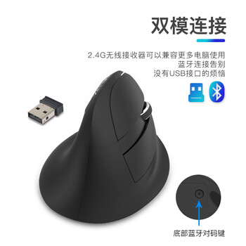 多彩(Delux)M618miniDB人体工程学鼠标 立式垂直鼠标 无线蓝牙鼠标双模笔记本电脑办公 干电池版 黑色