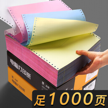 金值四联二等分撕边电脑打印纸彩色针式打印纸(241-4-1/2 色序:白红蓝黄 1000页/箱)