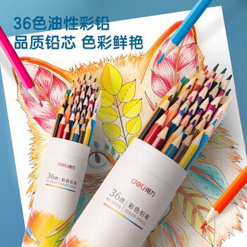 得力(deli)36色油性彩铅纸桶装绘画艺术写生彩色铅笔儿童涂色填色彩笔绘画笔套装礼物68124速写彩笔