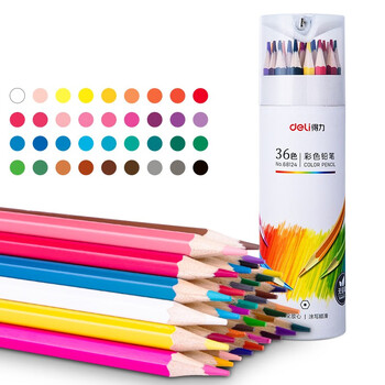 得力(deli)36色纸桶装学生绘画艺术写生彩铅彩色铅笔儿童涂色填色彩笔绘画笔套装 68124 规格:36色