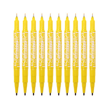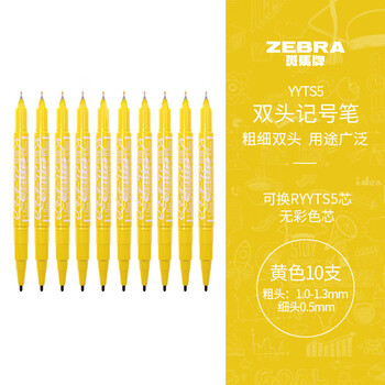 斑马牌(ZEBRA)YYTS5黄色油性记号笔粗细双头速干笔彩色学生美术绘图画勾线签字笔高颜值文具 10支