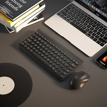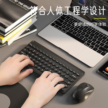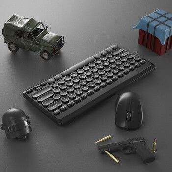 B.O.W航世 MK610 无线键盘鼠标套装 复古巧克力79按键 笔记本电脑办公通用键鼠套装 黑色