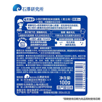 石泽研究所小苏打泡沫洁面乳100g男士洗面奶清洁黑头毛孔控油新年礼物男生