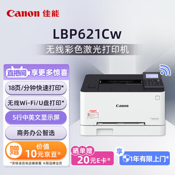 佳能(Canon) LBP621Cw A4幅面无线彩色激光单功能打印机(打印/大容量进纸家用 )