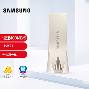 三星(SAMSUNG)256GB USB3.1 U盘 BAR 学习办公金属高速优盘 车载U盘 读速400MB/s(Gen 1)香槟银 适用哨兵模式