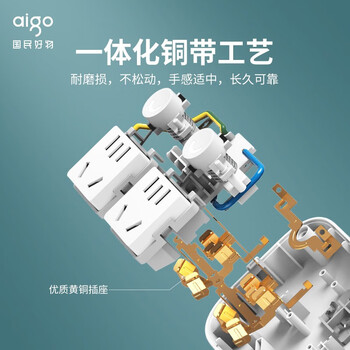 爱国者(aigo)转换插头/一转二插座/无线转换插座/电源转换器插头适用卧室/厨房 2位分控插排新国标AZ0202