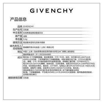 纪梵希高定禁忌唇膏小羊皮口红N333 3.4g
