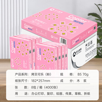 电脑、办公---办公用纸---复印纸亚太森博粉拷贝可乐70g B5 8包/箱