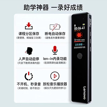 联想(Lenovo)录音笔D66 16G专业高清降噪远距声控录音器超长待机学生学习商务采访会议培训