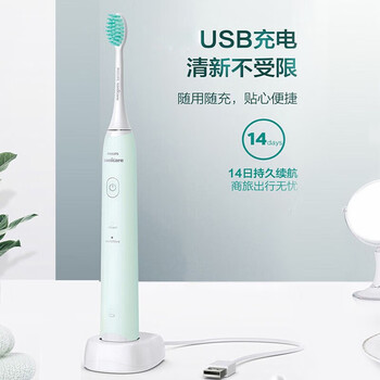 PHILIPS 电动牙刷 飞利浦(PHILIPS)电动牙刷小羽刷成人声波v电动牙刷 HX2421一个颜色随机