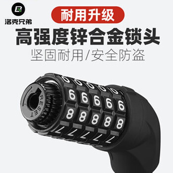 洛克兄弟 ROCKBROS 自行车锁电瓶电动车防盗密码锁公路车迷你小巧型加长便携 5位密码加粗钢缆570mm 黑色