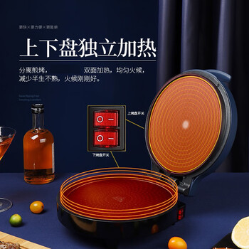 导油槽,是采用靠近开合绞链端的饼铛盖上设有的一种集油装置。这种集油装置为至少有一边与内凸部下端的饼铛盖面连成一体的、且其余边为凸边的集油导槽,与该集油导槽对应的饼铛盘的盘边沿上设有供该集油导槽卡卧的导油卧槽。若电饼铛有导油槽,则可以有效解决电饼铛内产生的油渍对机体腐蚀的问题,具有节油,无污损和腐蚀,提高产品的使用寿命和热利用率高的优点。