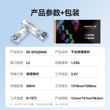 山泽(SAMZHE) SFP光模块千兆 1.25G单模双纤光纤模块(1310nm,20km,LC) 一只 SZ-SMQ20S*1