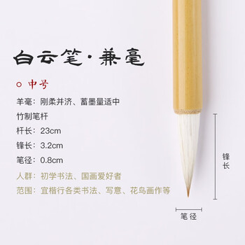 一海堂 文化毛笔 兼毫大白云中楷小楷兼毫学生书法国画专用初学者入门毛笔套装小学生成人楷书行书-兼毫中楷
