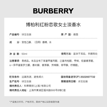 博柏利(BURBERRY)红粉恋歌女士淡香水50ml节日生日礼物送女友送老婆送女生