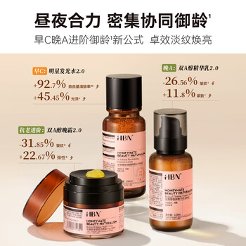 HBN a-熊果苷焕颜精萃水,HBN视黄醇塑颜精华乳,HBN视黄醇紧塑赋活晚霜