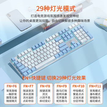 达尔优(dareu)EK815机械合金键盘 有线键盘 游戏键盘 108键单光 男生女生 电脑键盘 白色蓝色 青轴