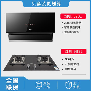 老板( Robam )大风压 大吸力 智能触控 免拆免洗抽油烟机燃气灶套装5701+9B32(线下同款)