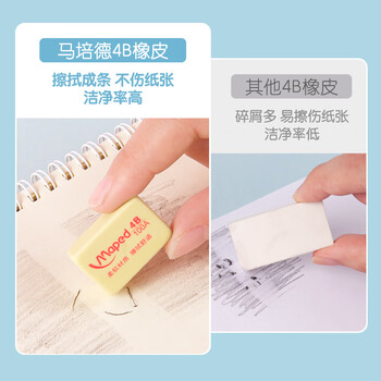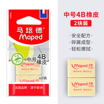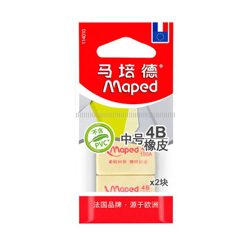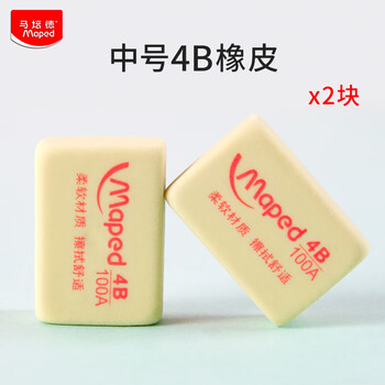 马培德(Maped)学生4B橡皮中号2块装 学生素描美术绘画黄色橡皮绘图考试橡皮擦无屑少屑无痕文具用品 114010CH