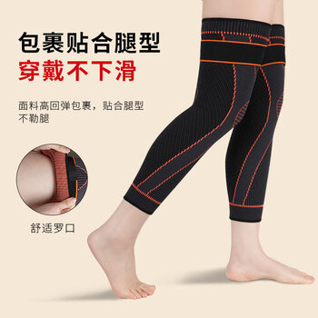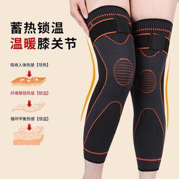 耐力克斯 运动护膝保暖男女加长防寒加压绑带中老年人老寒腿黑色一对均码