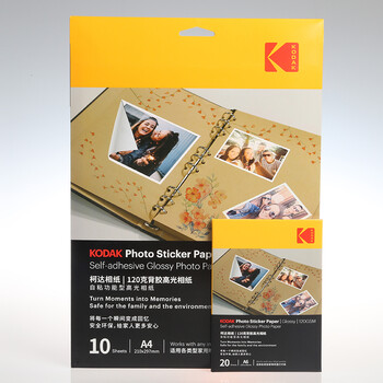 KODAK柯达 120克背胶照片纸A4喷墨打印纸相片纸/DIY照片贴纸不干胶相纸 10张装9891-122
