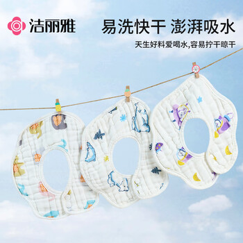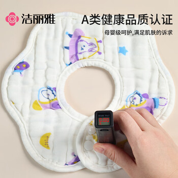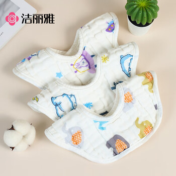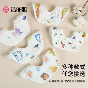 洁丽雅(Grace)A类纯棉8层围嘴5条装婴儿纱布口水巾围兜宝宝360度旋转吸水饭兜